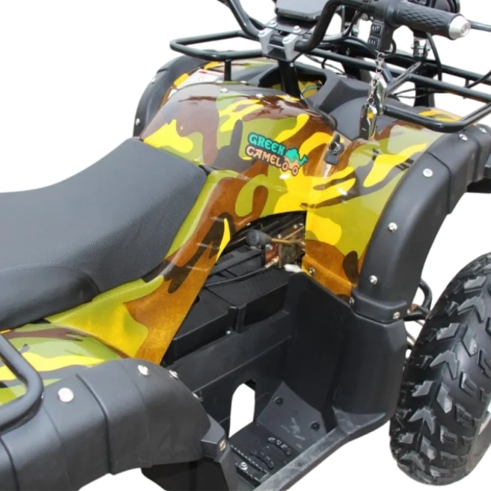 На квадроцикл GreenCamel Caxapa A4000 устанавливается сигнализация для лучшей безопасности. LED спидометр, с которым ваш ребенок сможет контролировать скорость на грунтовых дорогах и не преувеличить с ручкой подачи газа. Багажник спереди и сзади, на который можно положить вещи, трос, лебедки для большей уверенности в лесных тропах. Квадроцикл оборудован фаркопом.