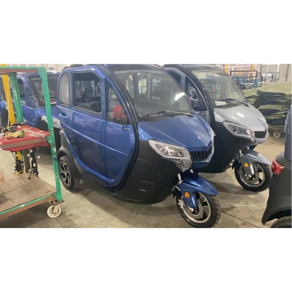 Модель представлена современным дизайном. Класс комфорта – премиум, функционал и скоростные характеристики – максимум. Модель оснащена камерами заднего вида, сигнализацией, тачскрином. Тормозная система – ручная. Салон электротрицикла кожаный, мягкий, повторяет анатомические части тела, создает комфортные для длительного путешествия условия.