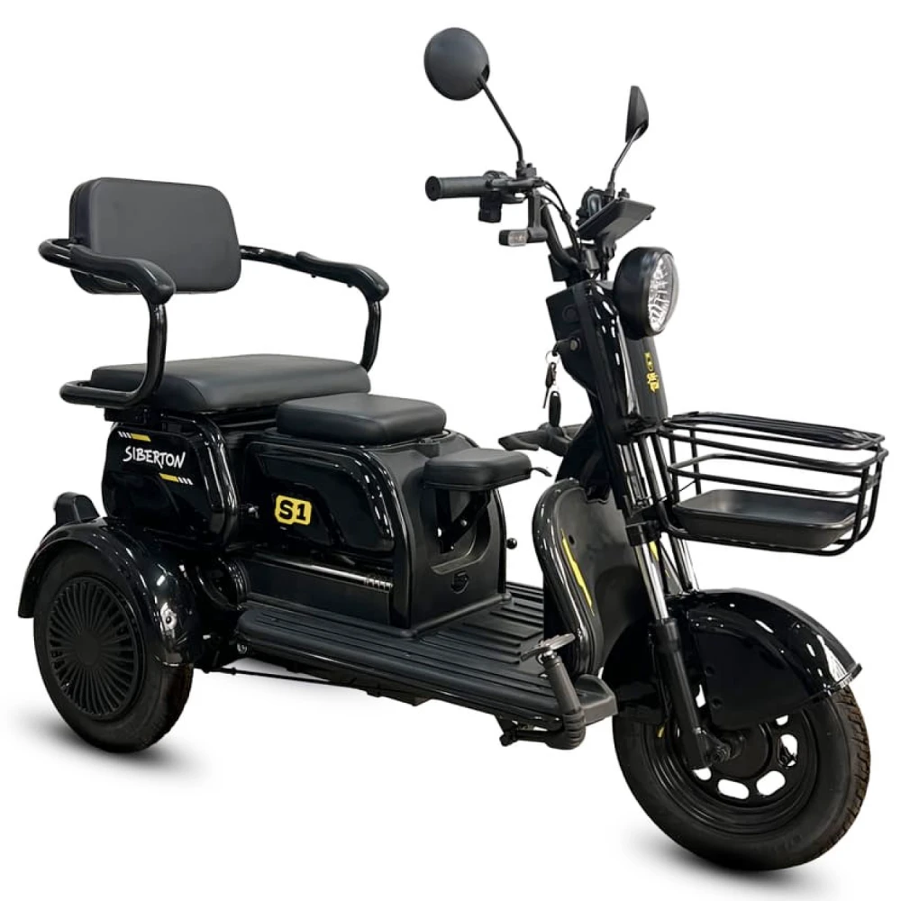 Электротрицикл Siberton S1 — компактный и манёвренный вариант для городских поездок и отдыха с мотором 2000 Вт, съёмным аккумулятором 60V 20–21 Ah и пробегом до 50 км. Эта модель сочетает устойчивость трёх колёс с лёгкостью управления, идеальна для новичков и курьеров.