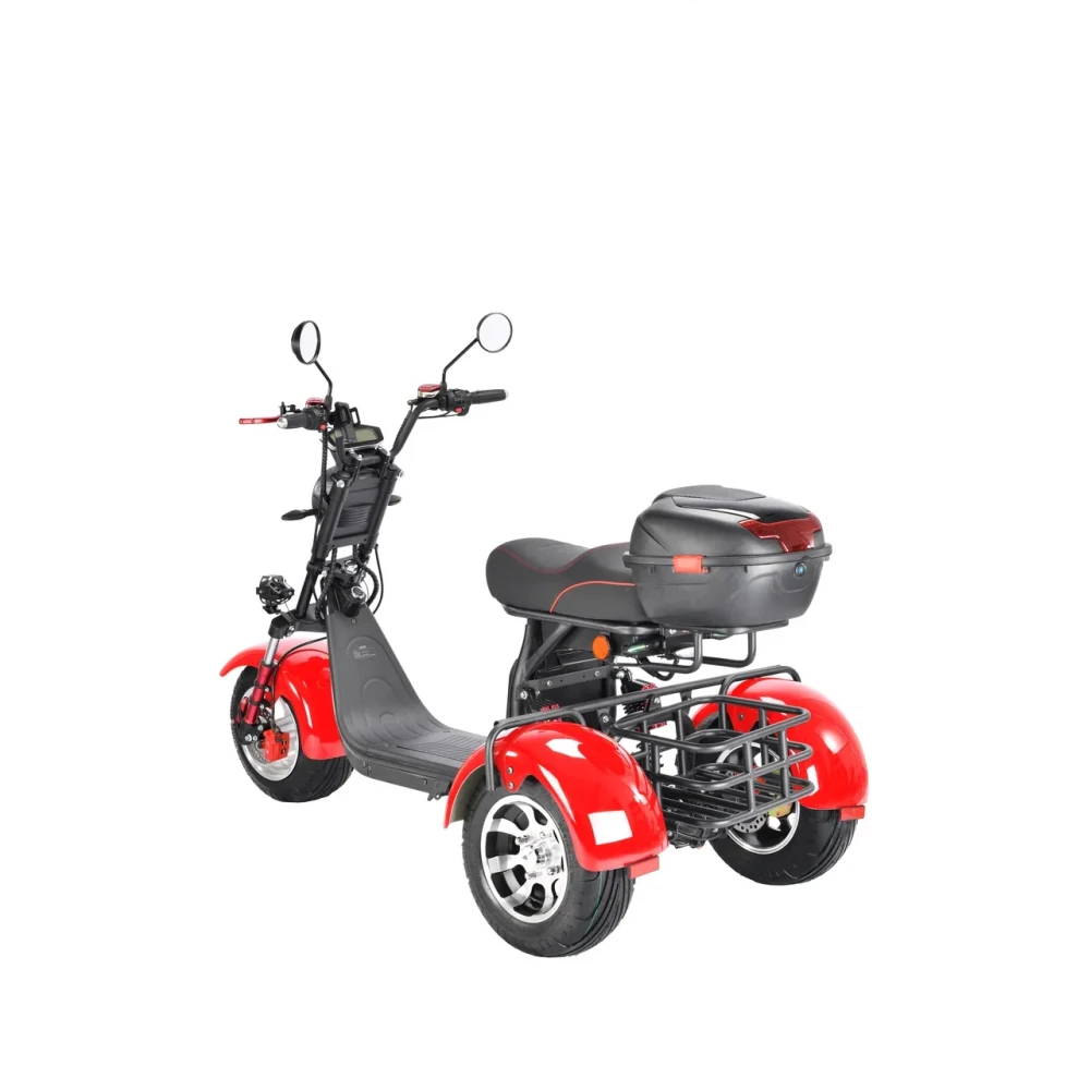 Трехколесный скутер CityCoco WS-Pro 3000W Trike+ красный - быстрый городской транспорт с литыми дисками и широкими колесами.