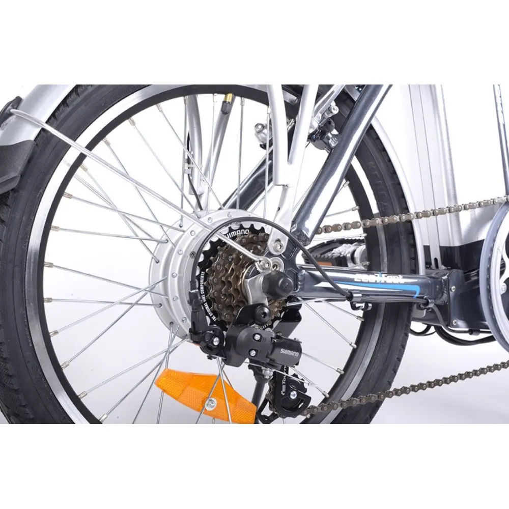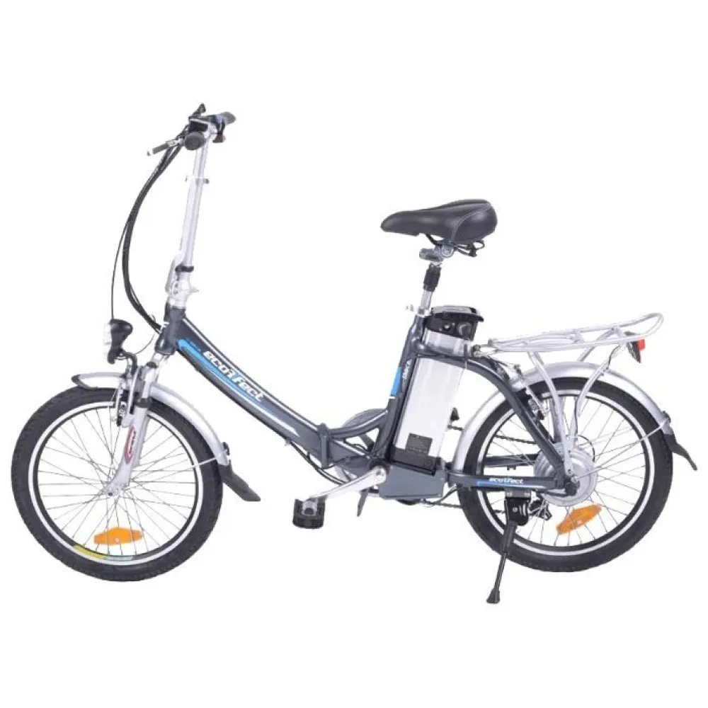 Электрический велосипед Ecoffect Urban Runne это компактный современный вид транспорта, предназначенный для передвижения в черте города и за его приделами. Складная рама позволяет транспортировать агрегат в багажнике автомобиля, с хранением нет проблем. Конструкция каркаса прочная и удобная, даже долгое время за рулем велосипеда не создаст дискомфорта. Наличие электродвигателя позволит преодолевать значительные расстояния. Если использовать комбинированный режим движения, при котором работает двигатель и крутятся педали, можно ощутимо уменьшить расход энергии аккумулятора. Литий-ионная батарея имеет емкость 10 А*ч, полного заряда хватает на 35 км пути.
