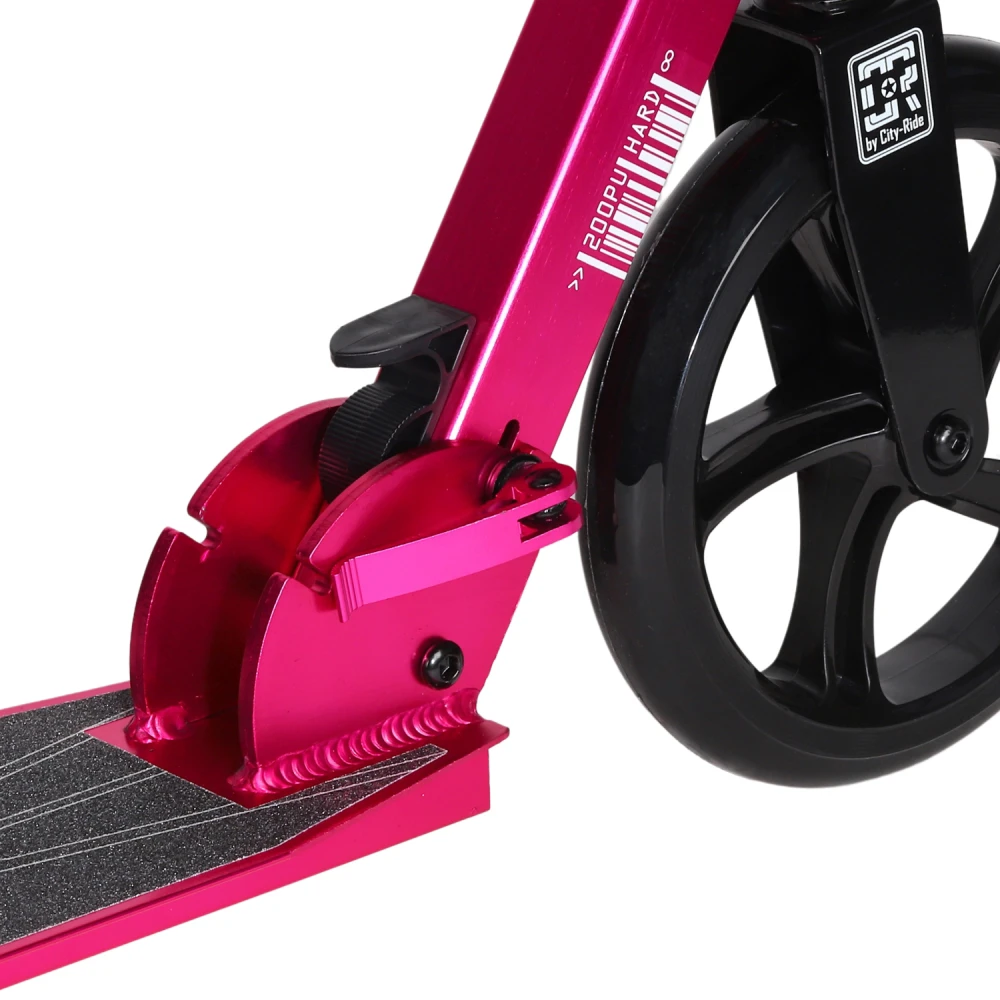 Городской самокат City Ride 200 розовый – шикарная складывающаяся техника грузоподъемностью до 100 кг предназначена для пользователей начиная от 8-летнего возраста. Накатистая часть допускает эксплуатацию в пределах города. Оснащенность самоката амортизационной системой делает движение плавным, минимизирует вибрации.
