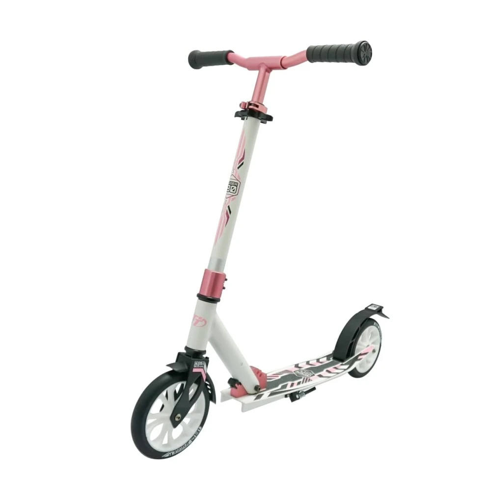 САМОКАТ TECH TEAM JOGGER 180 в красно-белом цвете предназначен для детей от 6 лет. Удобная изогнутая  форма руля позволяет юному владельцу комфортно управлять самокатом и совершать безопасные маневры. Руль закреплен на телескопической трубке из качественного металла и регулируется по высоте от 93 до 101 см. Присутствующий зажим надежно фиксирует руль в любом положении.  Достоинство этого руля также заключается в том, что на нем есть светоотражающая полоска, которая хорошо заметна водителями автомобилей в условиях плохой видимости. Для удобства переноски и перевозки самоката данная модель имеет простую и быструю  систему складывания. Есть крепление для переноски самоката в руке или на плече.