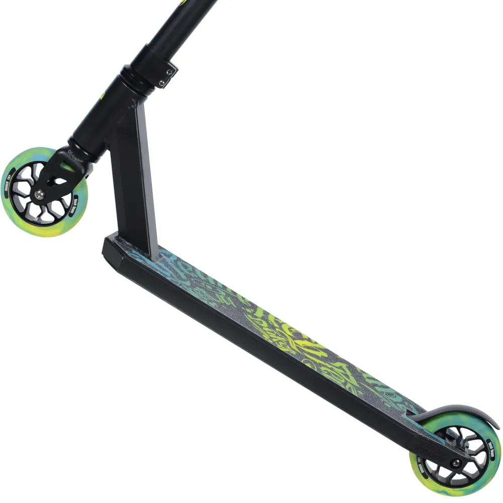 Колеса имеют диаметр 110 см, это идеально для трюкового самоката, баланс наката и маневренности. Подшипники среднего класса.