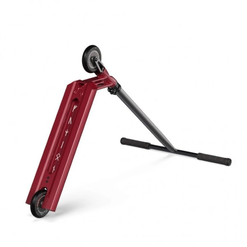 Техника рассчитана на пользователе весовой категорией до 100 кг. Т-образная форма руля изготовлена из инновационного хроммолибдена, считается лучшим решением производителя. Оснащена нескользящими прорезиненными грипсами, благодаря которым увеличивается хват во время исполнения трюков. Колесная часть – полиуретановая, малостираемая, рассчитана на жесткую эксплуатацию. В сочетании с подшипниками последнего поколения гарантируют отличный накат и массу острых впечатлений.