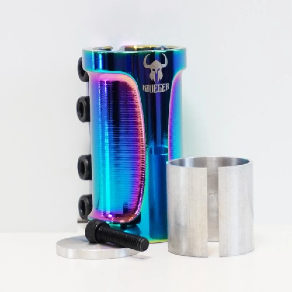 Хомут Krieger для трюковой модели самоката SCS KRC-002G в цвете бензин – изделие в современном цветовом оттенке выглядит фантастически. Технические параметры подтверждают брендовость и долговечность продукции.